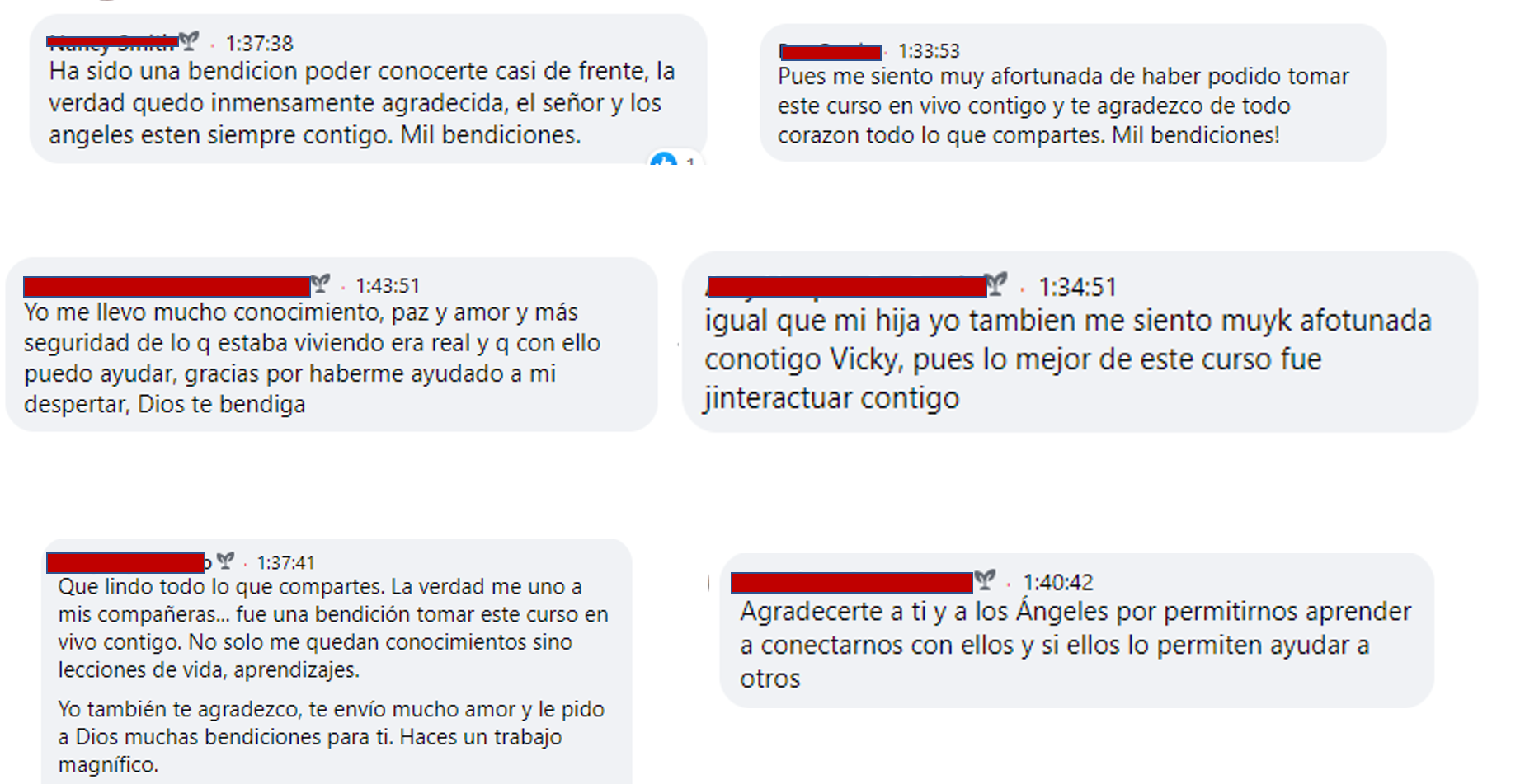Me encanta estudiar con Vicky. He hecho casi todos sus cursos. Me gusta mucho como enseña porque le entiendo muy bien. Con ella he aprendido muchas cosas del mundo espiritual que hoy me ayudan a seguir mi vida. Recomiendo mucho estudiar con ella, es fácil y se enfoca a que aprendamos.